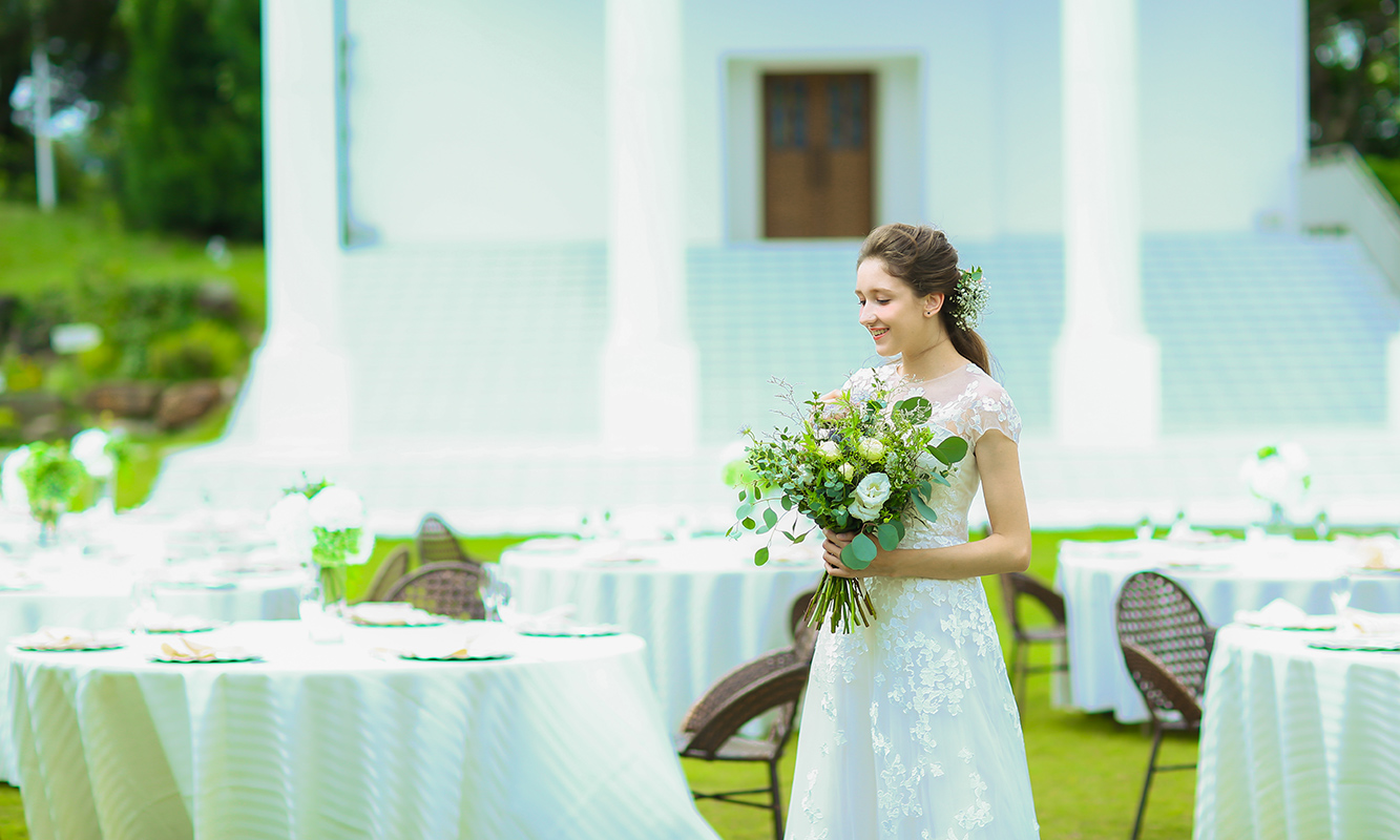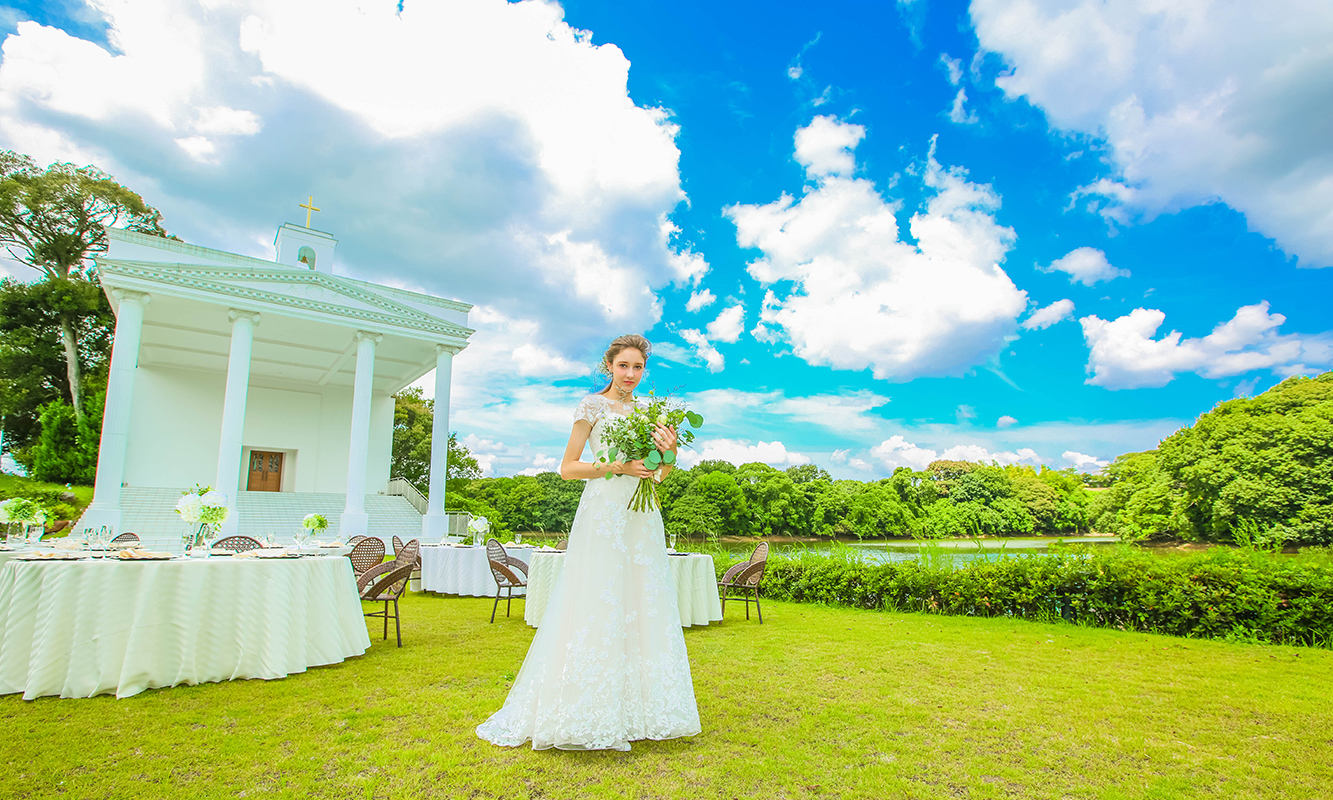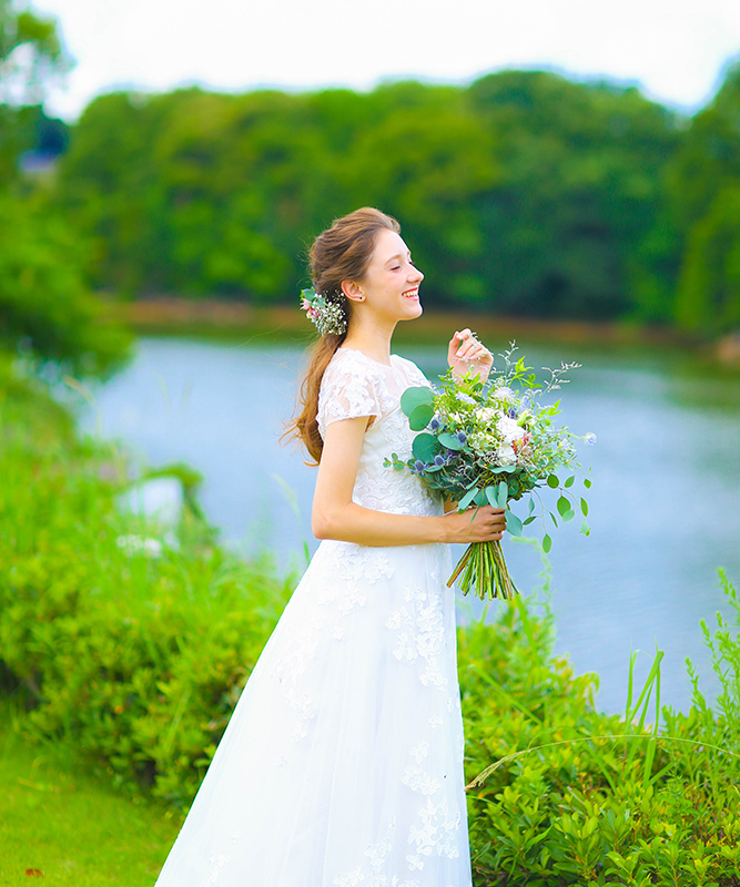 森と湖に囲まれたガーデンでの挙式。