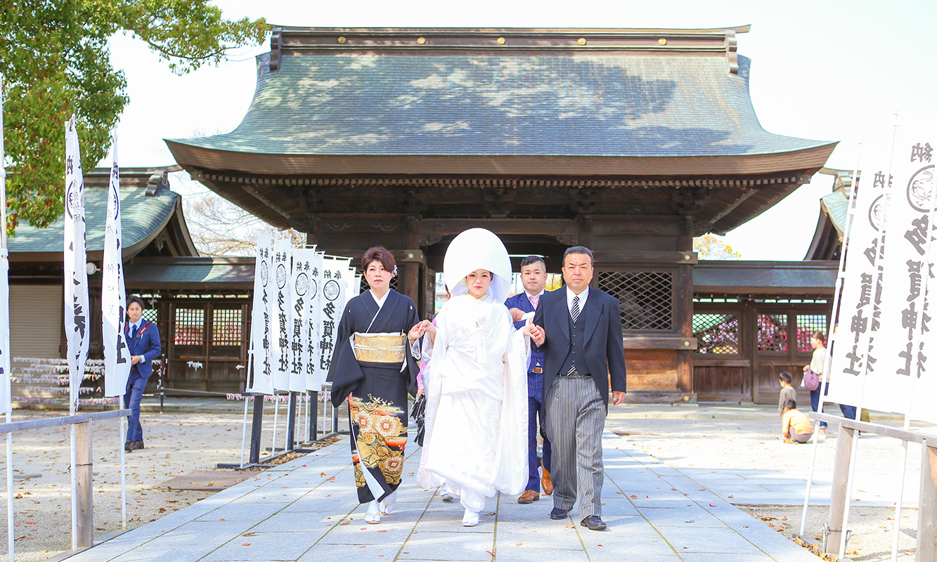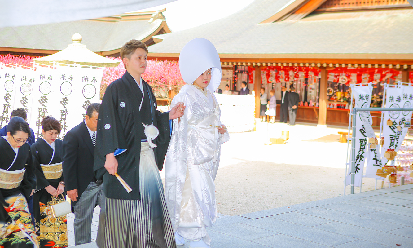 和装に身を包まれて、日本人ならではの挙式スタイルも素敵です。